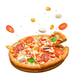 PRESUNTO, MUSSA, CALABRESA, TOMATE, OVO, MILHO, PALMITO, BACON, MANJERICÃO E CEBOLA.